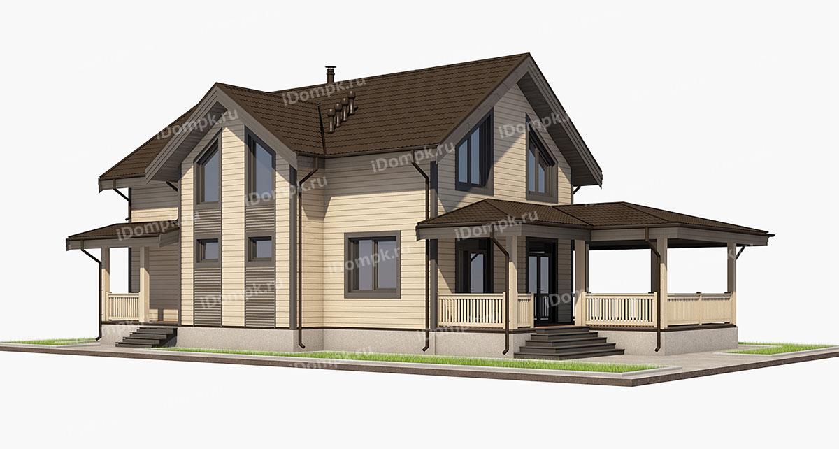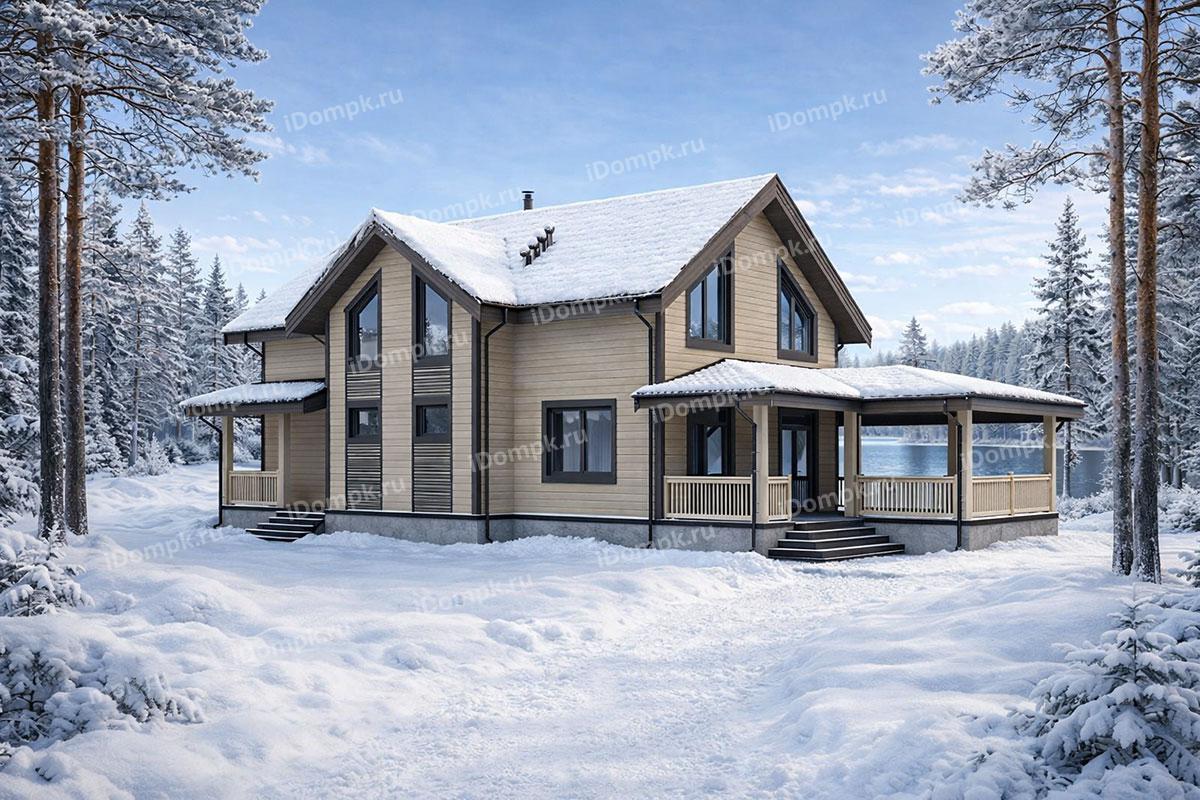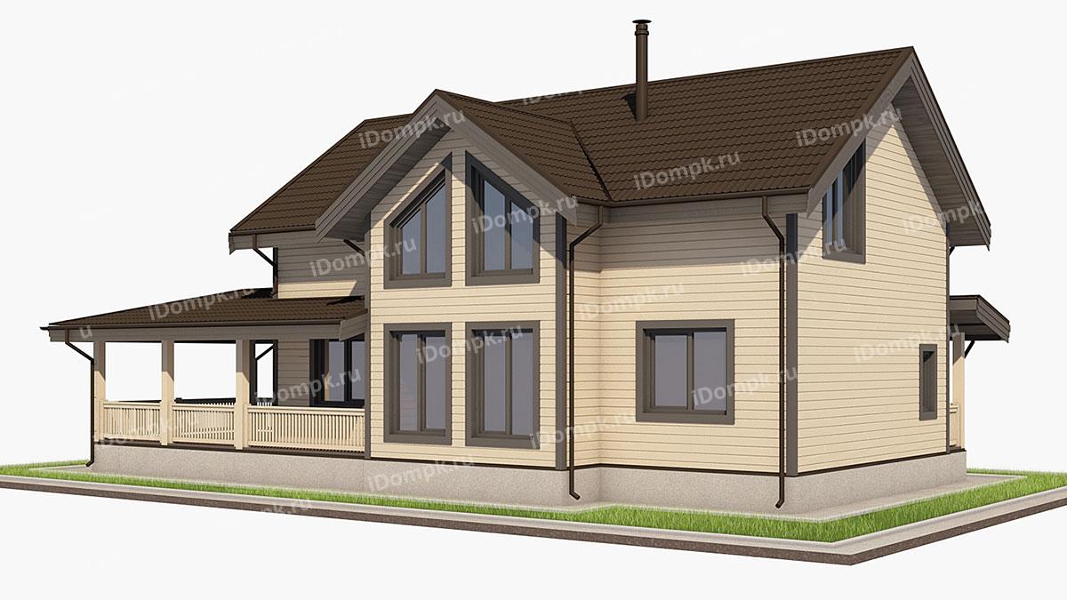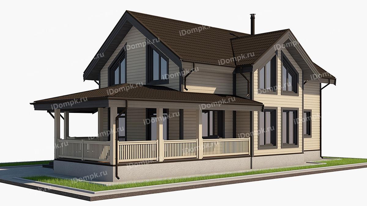 Проект дома на винтовых сваях с большой верандой и 5 спальнями