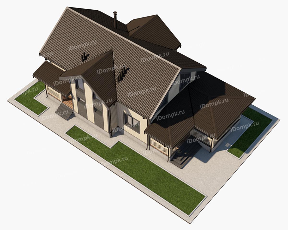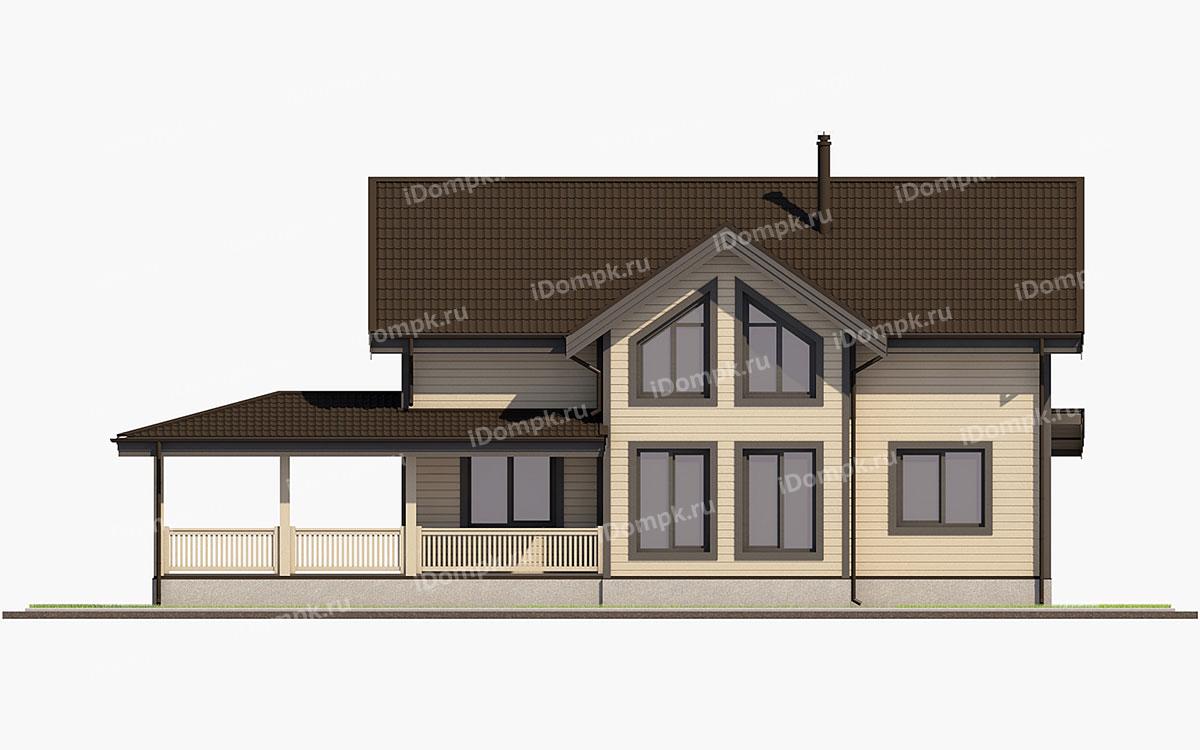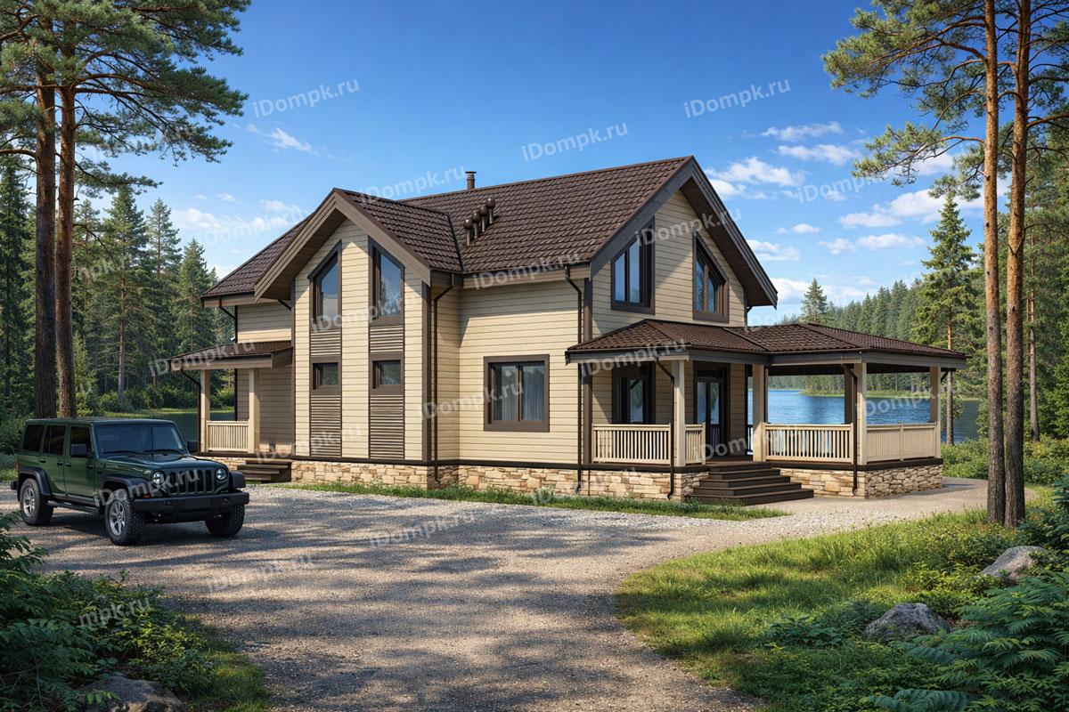 Проект дома на винтовых сваях с большой верандой и 5 спальнями