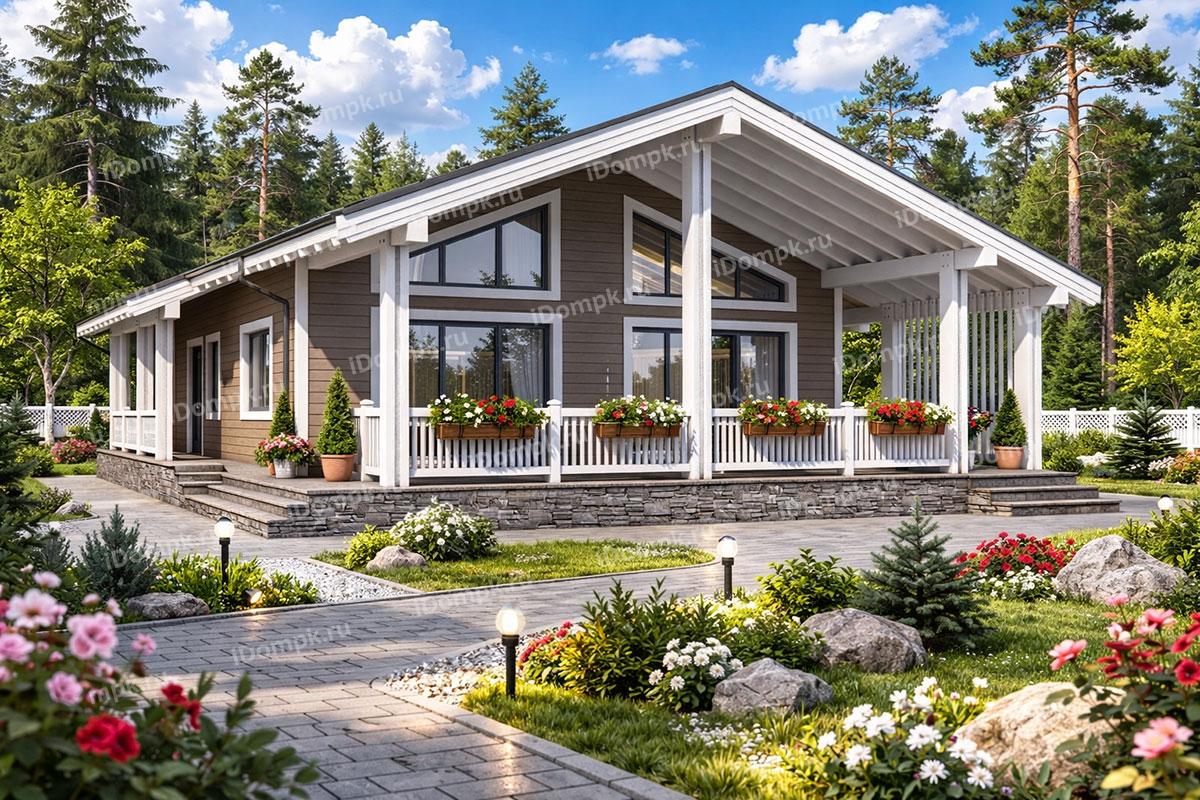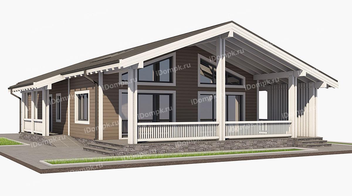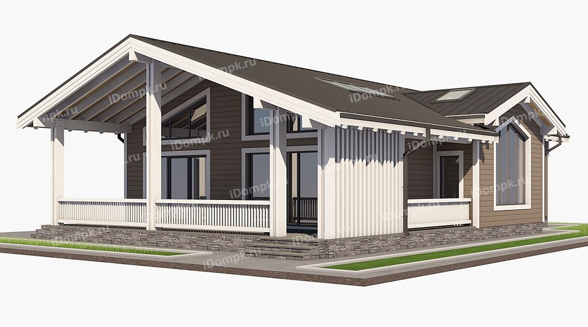 Проект одноэтажного дома до 130 кв с 3 спальнями и большой террасой