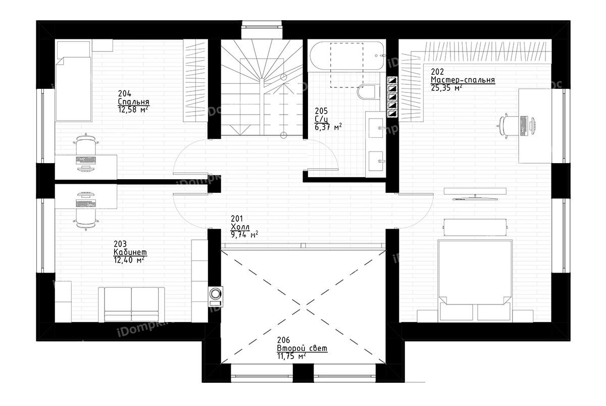 Проект дома до 150 кв с мансардой, кабинетом, 3 спальнями и вторым светом